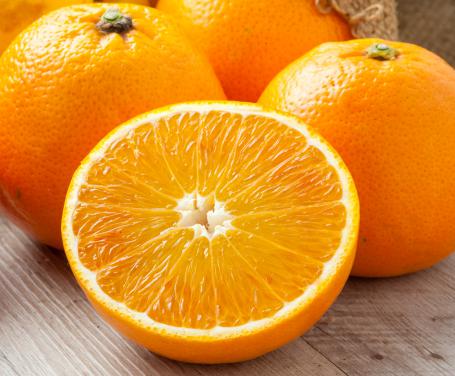 Polpa color arancio, molto succosa e priva di semi. Buccia di medio spessore, color giallo arancio.